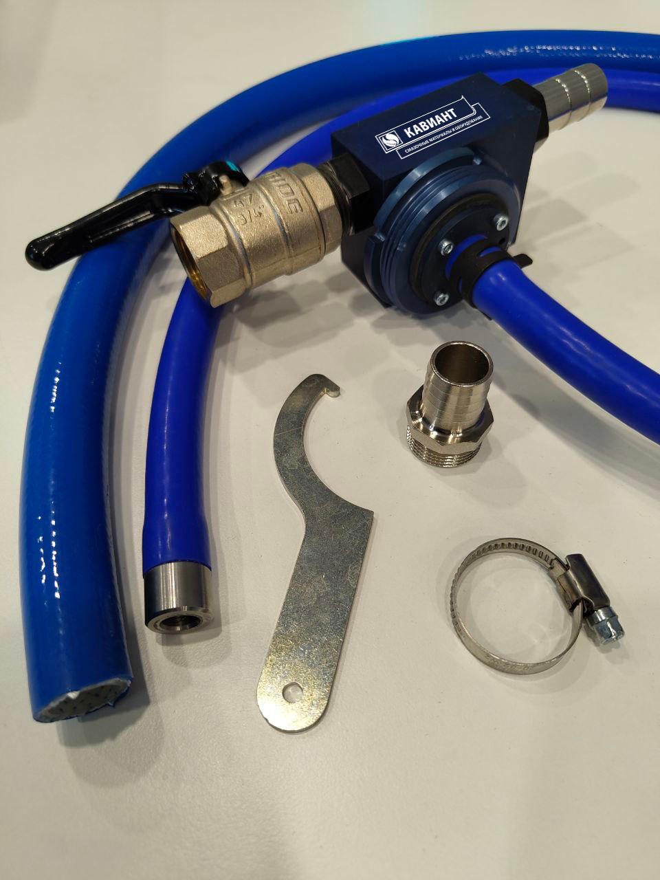 Смеситель устанавливается на бочку или на канистру, содержащие концентрат СОЖ, и соединяется с устройством подачи воды. После подачи напора воды, концентрат всасывается и смешивается со струей воды внутри смесителя по принципу действия сопла Вентури.